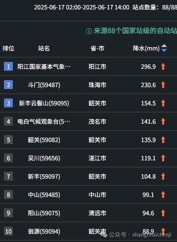 ↑ 截至6月17日14时的近12小时雨量统计,榜单前四都已达特大暴雨级别。